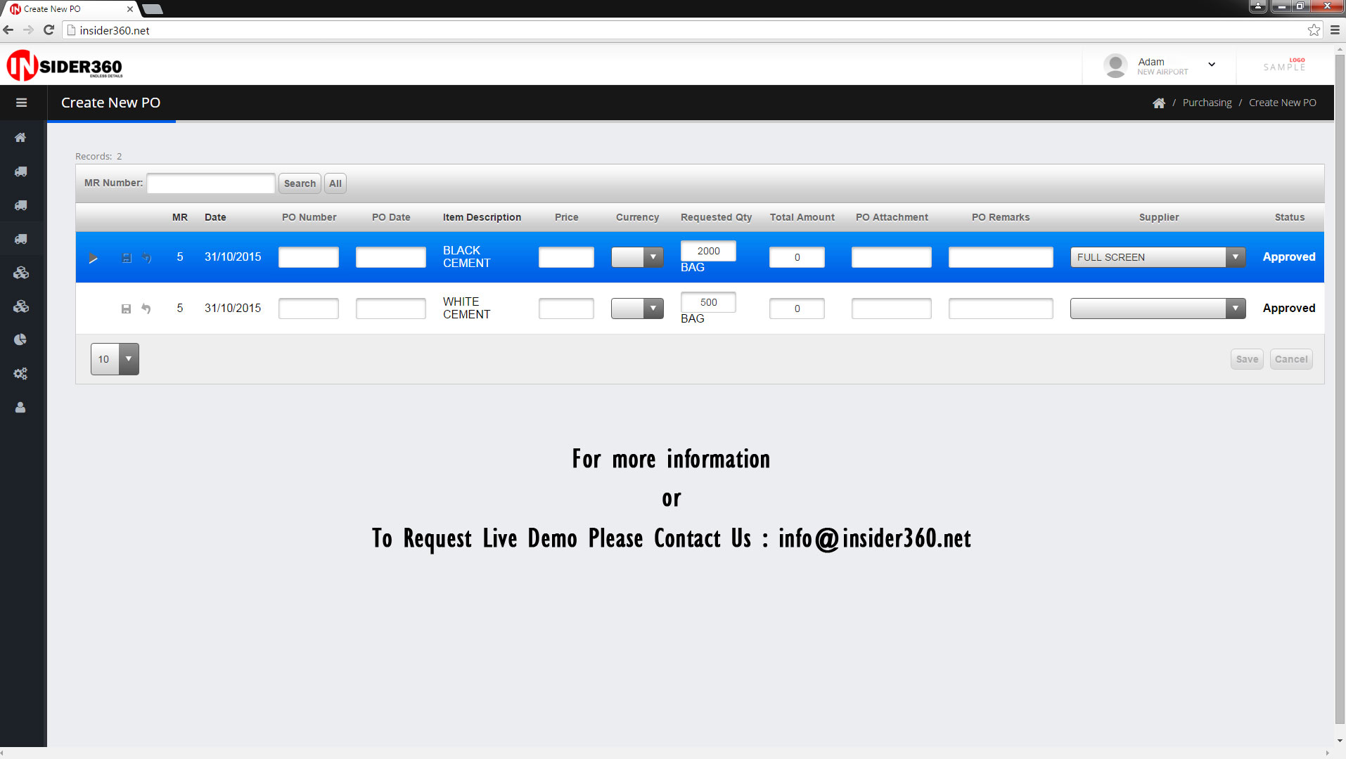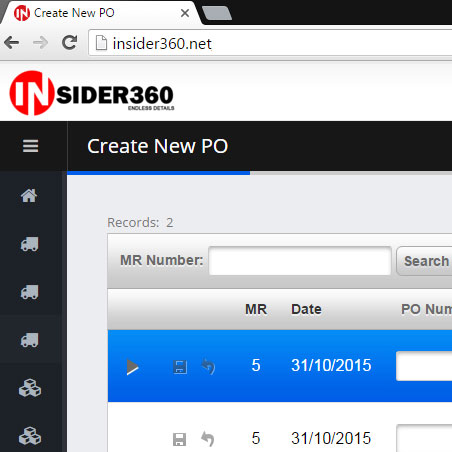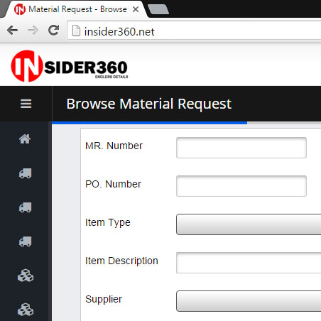 INSIDER360 provides you a full tracking module to all your material documentation, order quantities, ordered by whom, order date, order status and delivery status. The system assists you to follow up your materials flow and traffic through several logical stages and gathering information from all other parties instantly.
